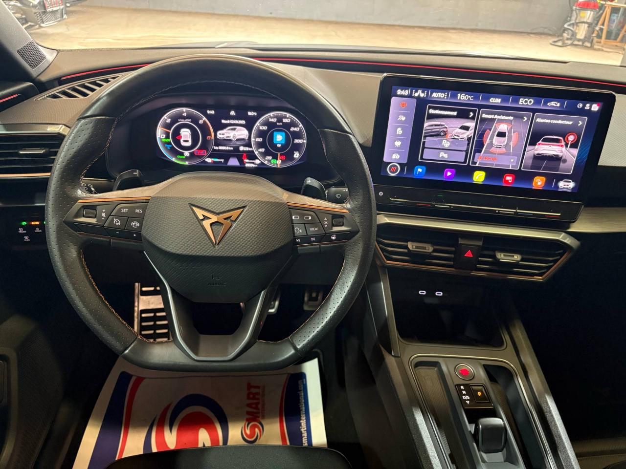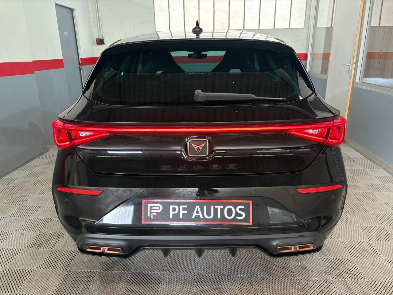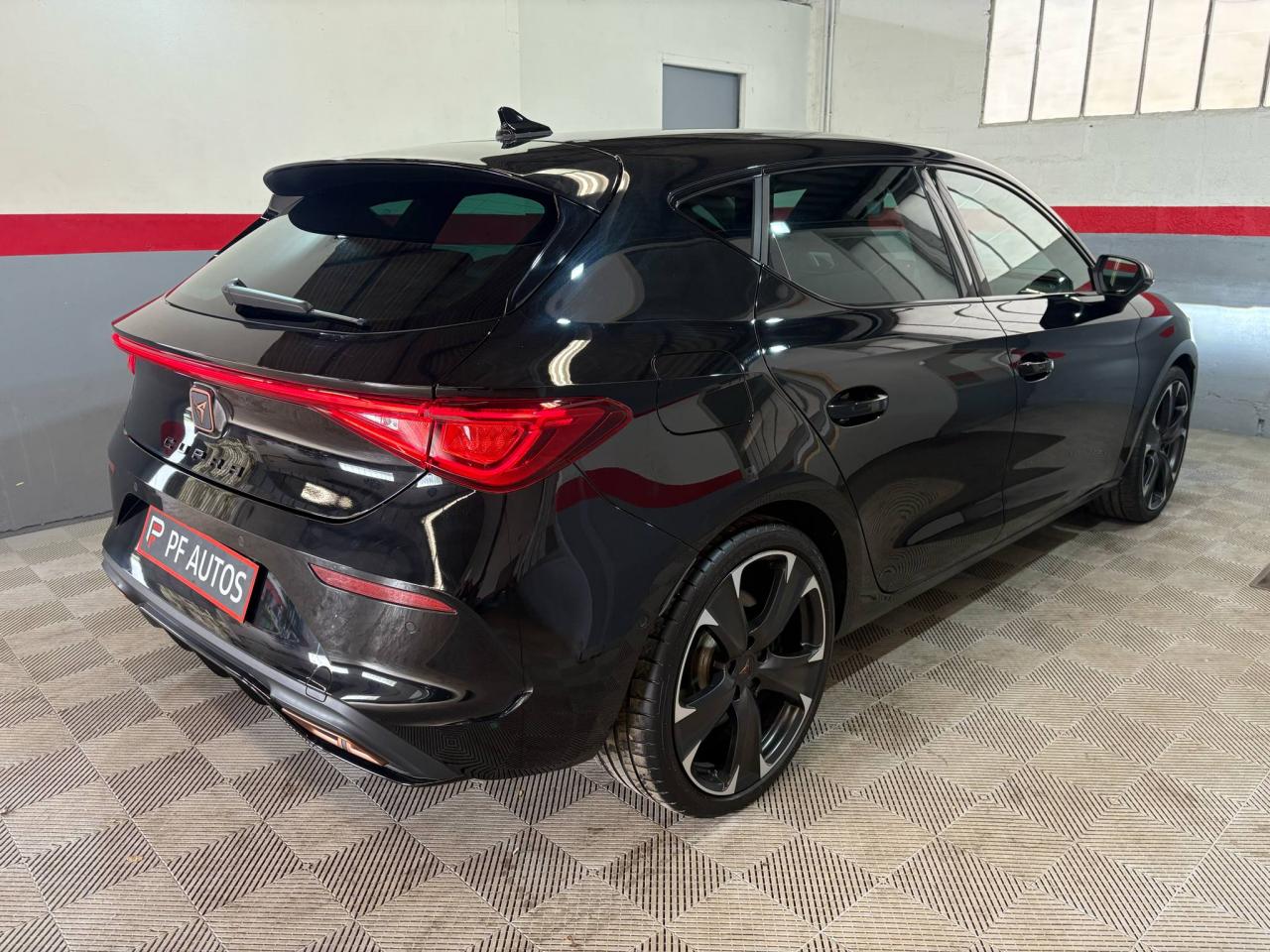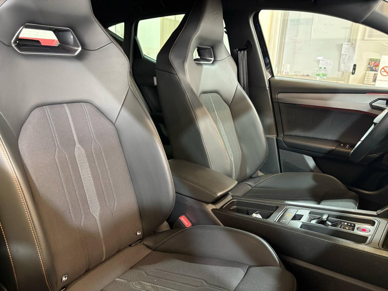 2 prises USB-C éclairées à l'AV et 2 à l'ARCommandes au volant (audio, Bluetooth, régulateur et limiteur de vitesse, contrôle de l'ordinateur de bord)Démarrage sans cléESC (contrôle électronique de stabilisation)Front assist avec freinage d’urgence et détection de piétonsLane Assistant : assistant de maintien dans la voieMode de conduite - 4 modes : "Confort" , "Sport" , "Cupra" , "Individual"Régulateur de vitesse plus limiteur de vitesseRétroviseurs extérieurs électriques et dégivrants, rabattables électriquementSiège conducteur réglable électriquement et à mémoireSièges chauffants à l'avantAccoudoir centralCaméra de reculCiel de pavillon noirClimatisation automatique Climatronic tri-zoneConnectivity Box avec amplification du signal et chargeur à inductionDétecteur de pluie et allumage automatique des projecteursDigital Cockpit : combiné d’instruments digital haute résolution couleur de 10,25"Direction dynamiqueDossiers de banquette AR rabattables 2/3 1/3Eclairage d'ambiance personnalisableEclairage de bienvenue avec projection du logo CUPRA au solFeux arrière LED avec bandeau Infinite LightFixations Isofix et Toptether aux sièges arrièreJantes alliage 19" Palm SpringsPark-assist avec aide au stationnement avant et arrièreProjecteurs antibrouillard avec Cornering Light et Coming HomeProjecteurs Full LEDRadio Numérique DABRéglage en hauteur et lombaire des sièges avantRégulation adaptative du chassis DCCSièges Baquets similicuir/tissu noir avec surpiqûres CopperVolant Cupra multifonction, chauffant avec palettes au volant