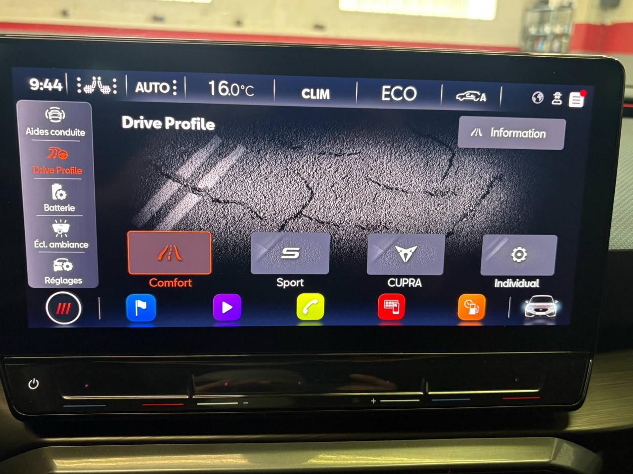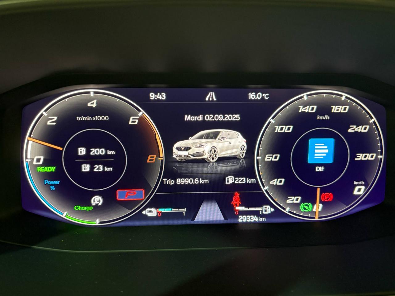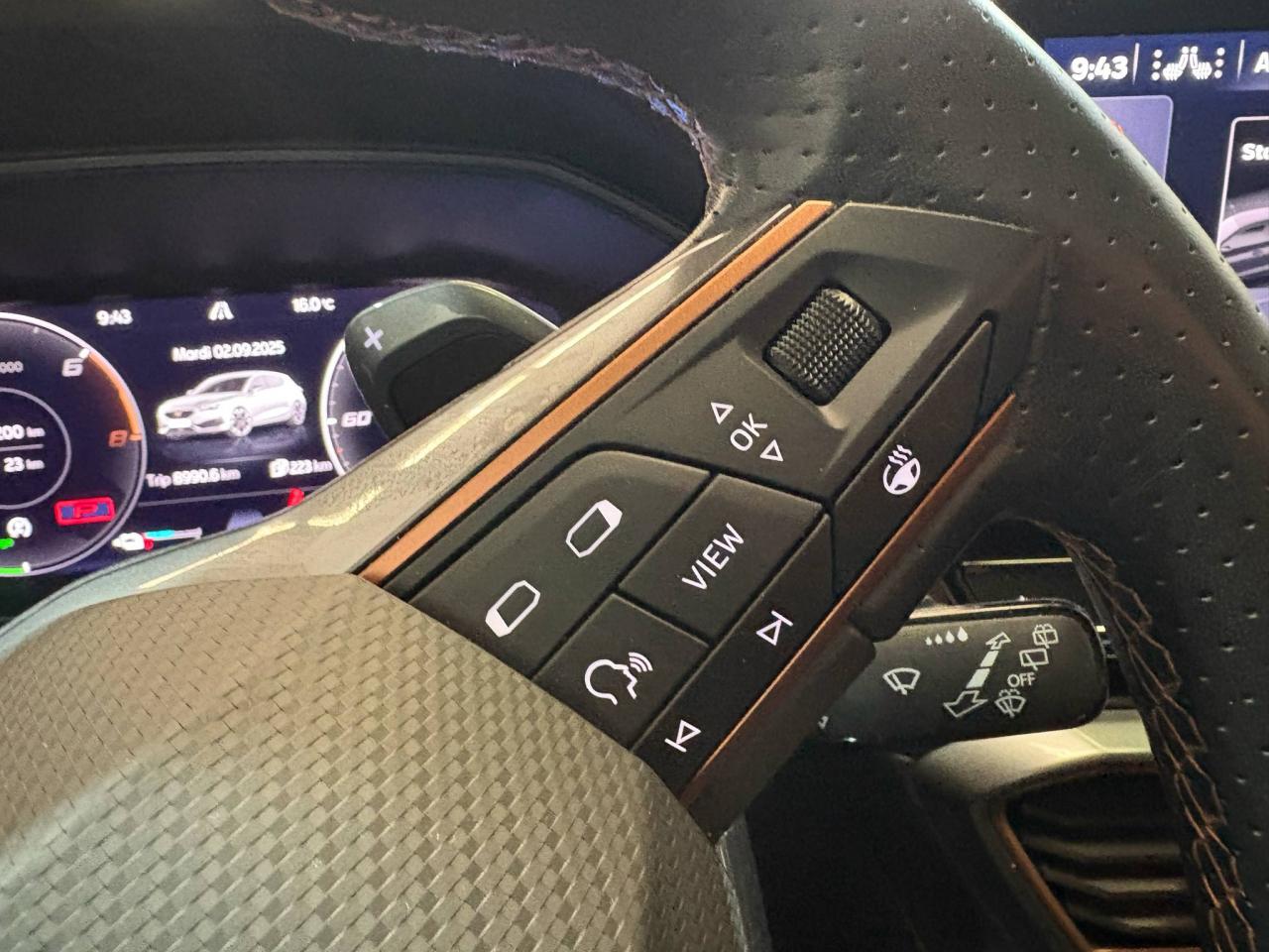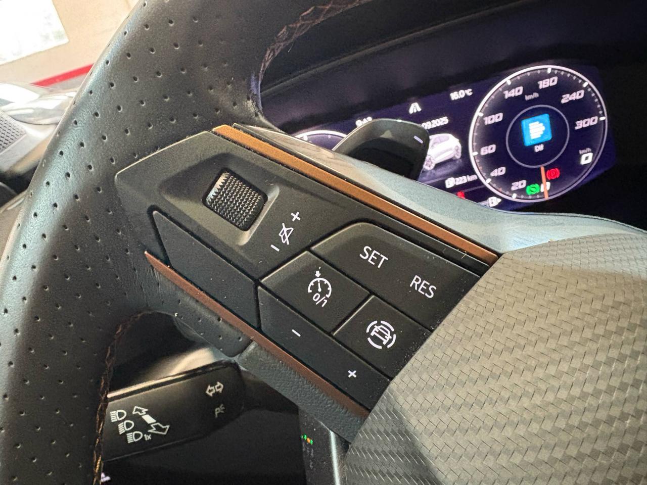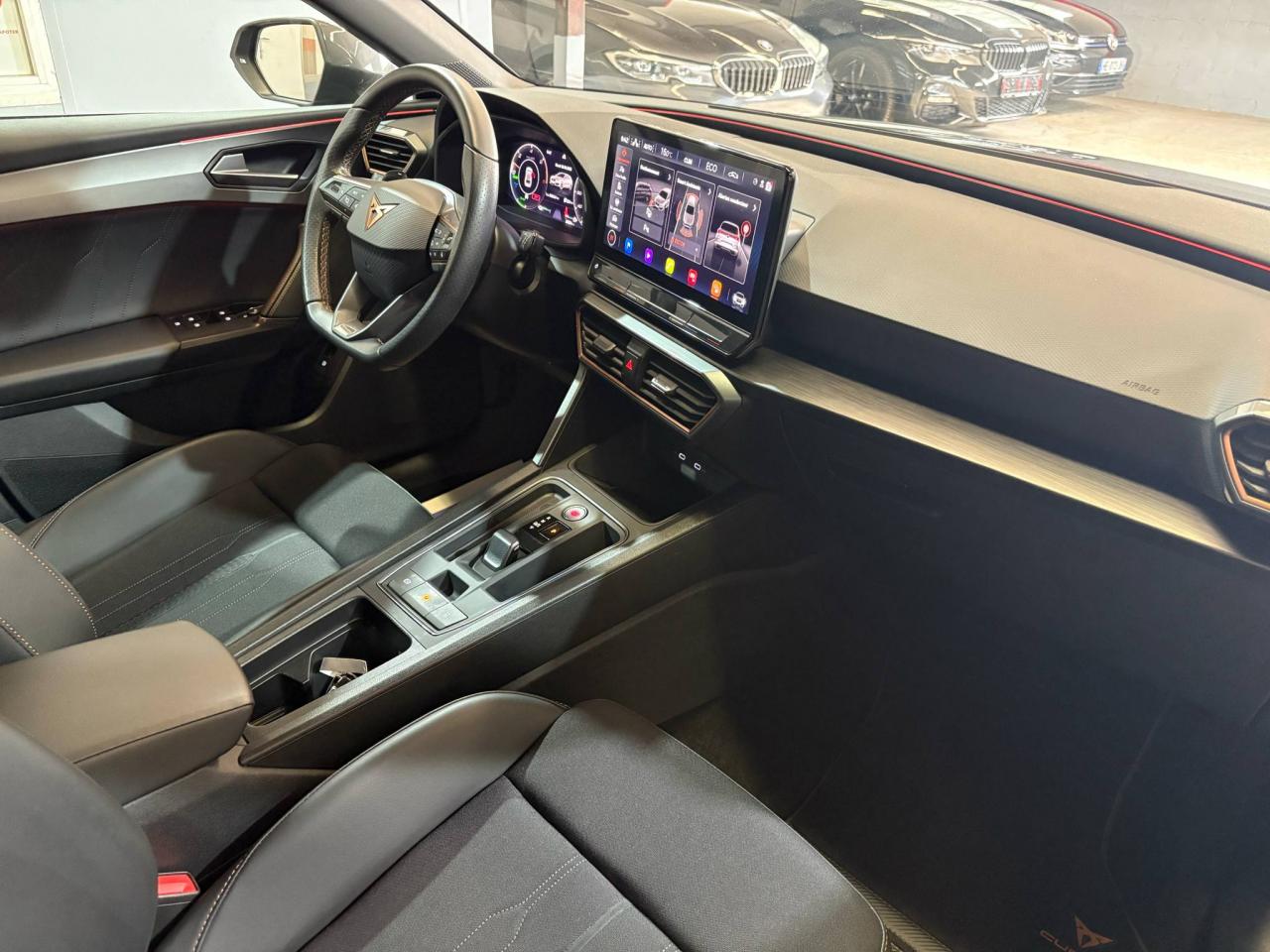 2 prises USB-C éclairées à l'AV et 2 à l'ARCommandes au volant (audio, Bluetooth, régulateur et limiteur de vitesse, contrôle de l'ordinateur de bord)Démarrage sans cléESC (contrôle électronique de stabilisation)Front assist avec freinage d’urgence et détection de piétonsLane Assistant : assistant de maintien dans la voieMode de conduite - 4 modes : "Confort" , "Sport" , "Cupra" , "Individual"Régulateur de vitesse plus limiteur de vitesseRétroviseurs extérieurs électriques et dégivrants, rabattables électriquementSiège conducteur réglable électriquement et à mémoireSièges chauffants à l'avantAccoudoir centralCaméra de reculCiel de pavillon noirClimatisation automatique Climatronic tri-zoneConnectivity Box avec amplification du signal et chargeur à inductionDétecteur de pluie et allumage automatique des projecteursDigital Cockpit : combiné d’instruments digital haute résolution couleur de 10,25"Direction dynamiqueDossiers de banquette AR rabattables 2/3 1/3Eclairage d'ambiance personnalisableEclairage de bienvenue avec projection du logo CUPRA au solFeux arrière LED avec bandeau Infinite LightFixations Isofix et Toptether aux sièges arrièreJantes alliage 19" Palm SpringsPark-assist avec aide au stationnement avant et arrièreProjecteurs antibrouillard avec Cornering Light et Coming HomeProjecteurs Full LEDRadio Numérique DABRéglage en hauteur et lombaire des sièges avantRégulation adaptative du chassis DCCSièges Baquets similicuir/tissu noir avec surpiqûres CopperVolant Cupra multifonction, chauffant avec palettes au volant