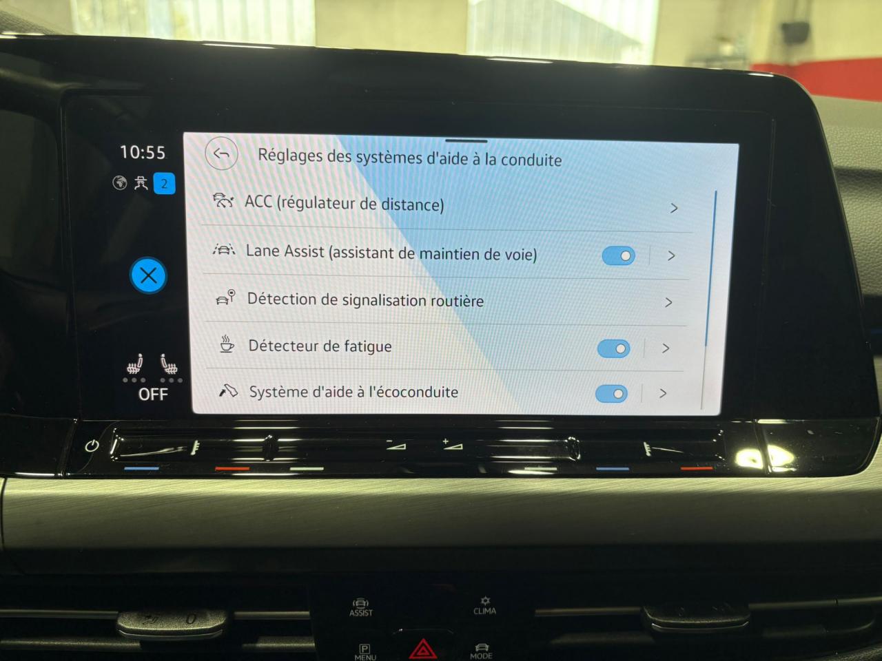 2 interfaces USB-C à l'avant et 2 prises de chargement USB-C derrière l’accoudoir pour les passagers arrièreBouton de démarrage “Start/Stop”Commandes au volant (audio, Bluetooth, régulateur et limiteur de vitesse, contrôle de l'ordinateur de bord)Régulateur de vitesse adaptatif (ACC)Accoudoir central arrière rabattable et deux porte-gobeletsApp-Connect sans filAppui-tête arrière réglables en hauteurAppuie-tête à l'avant, réglables en hauteurBaguette lumineuse entre les projecteursClimatiseur "Air Care Climatronic" 3 zones et filtre anti-allergène et éléments de commandes à l'arrièreDigital Cockpit Pro : combiné d’instruments digital avec écran digital haute résolution couleur de 10.25”Fatigue Detection : Système de détection de fatigue du conducteurFixation pour siège enfant ISOFIX (arrière, x2)Frein de stationnement électromécanique avec fonction d’immobilisation en pente ‘Auto hold’ et assistant de démarrage en côteFront assist avec freinage d’urgence et détection de piétonsLimiteur de vitessePack Travel Assist: combinaison du Lane Assist, du Side Assist, du Régulateur de distance et de l'Emergency Assist qui interagissentPack visibilitéPalettes au volantParkPilot : Système d’aide au stationnement avant/arrière avec signaux sonores et visualisation de la distance des obstacles sur l’écranProjecteurs avant LED PlusRéception radio numérique DAB+Sélection du profil de conduiteSellerie Microfleece ‘ArtVelours’Siège conducteur 'ergoActive' réglable électriquement avec mémoire, inclinaison de l'assise de siège et longueur de l'assise réglablesSièges avant réglables en hauteurSign Assist: Reconnaissance des panneaux de signalisation et affichage sur le ‘Digital Cockpit’ et l’écran du système de radionavigationTrappe pour recharge électrique : aile avant gaucheVitres avant et arrière électriquesVolant multifonction en cuirVolant réglable en hauteur et en profondeur